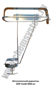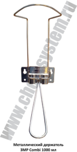 - Металлический держатель «ЗМР Combi 5000 мл» предназначен для настенного крепления флаконов ёмкостью 5000 мл. Держатель изготовлен из нержавеющей стали, является прочными и легко чистится, надежен в работе и экономно расходует препараты, снабжен рычагом для дозирования.